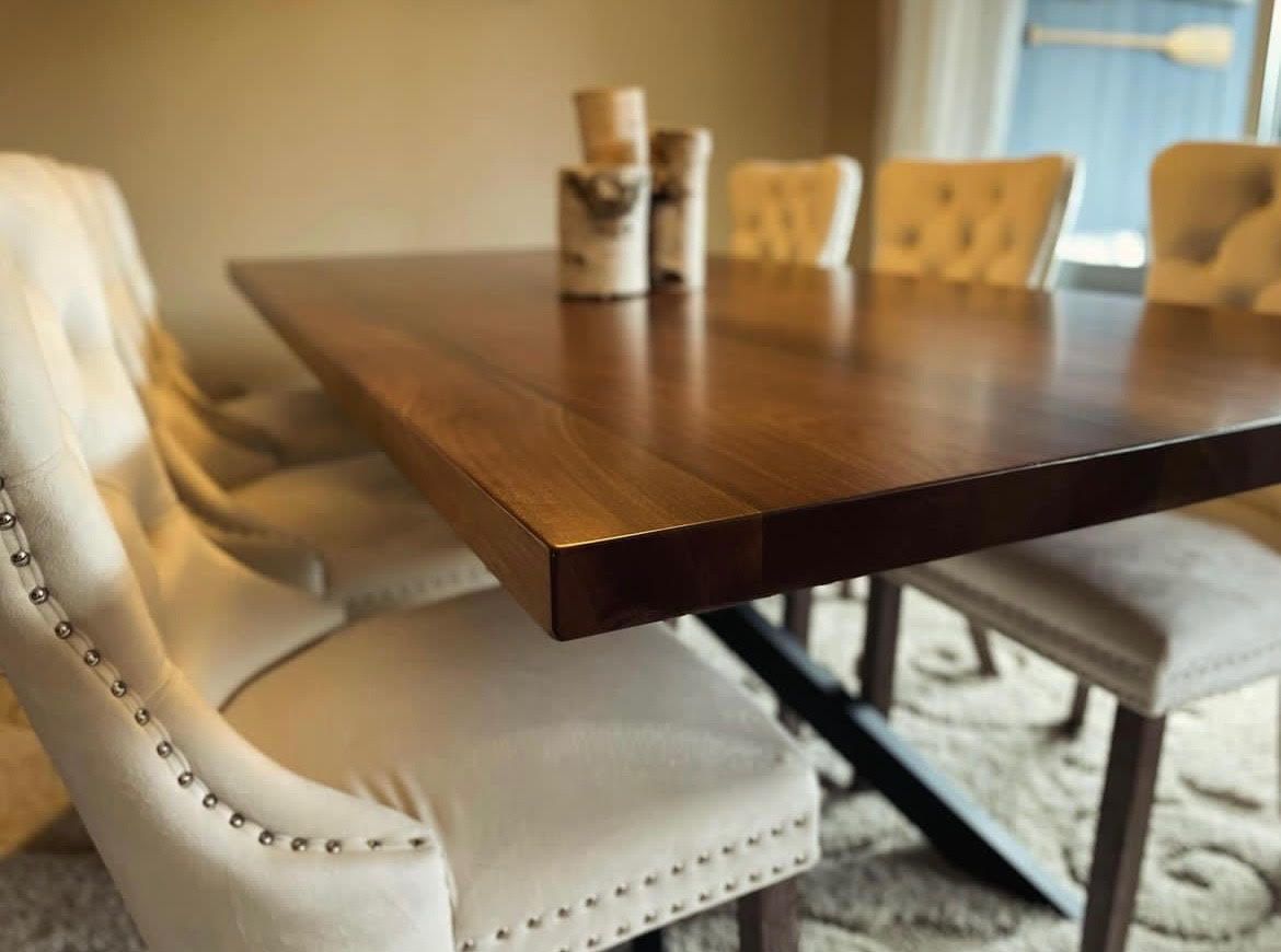 Our newest collection of custom live-edge tables combines beauty and functionality, perfect for family gatherings or quiet dinners. Crafted to your size and style, each piece is a unique addition that makes mealtime special. Discover your perfect table today!